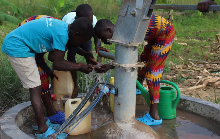 With our "Clean water for the village" project, we aim to provide portable water in different rural communities in Africa in collaboration with our local partners. This will ease the burden of walking several miles to access clean drinking water and to reduce dependency on unsustainable portable drinking water supplied in plastic bags or bottles that litter the rural areas.