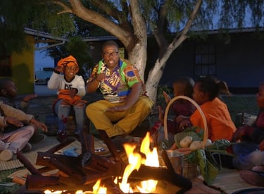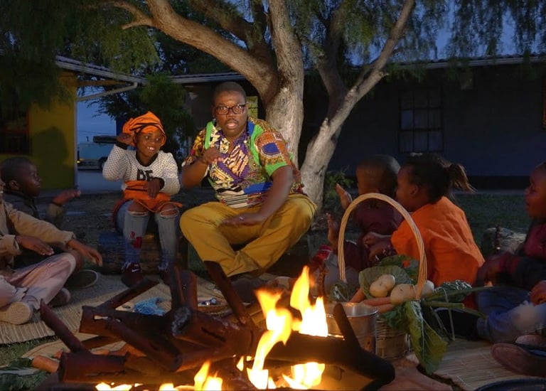 African storytelling is a crucial cultural practice that uses oral narratives to convey moral lessons, historical events, and cultural values. Performed by traditional storytellers, it involves music, dance, and dramatic expressions to engage the audience. It often incorporates traditional elements like oral traditions, folklore, and indigenous languages, and addresses themes such as identity, resistance, love, and community struggles. The poetry frequently draws on the rhythms and sounds of African music and dance.